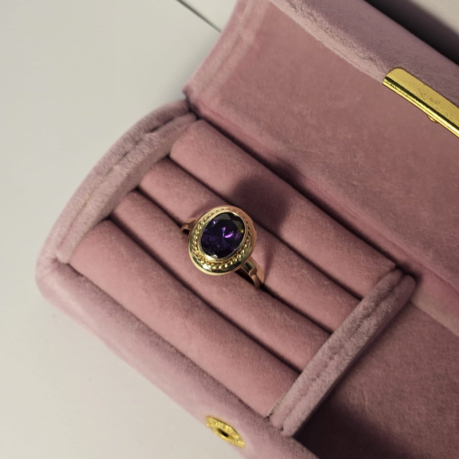 Inel din aur galben 14K cu piatra mov, 2.96 Grame